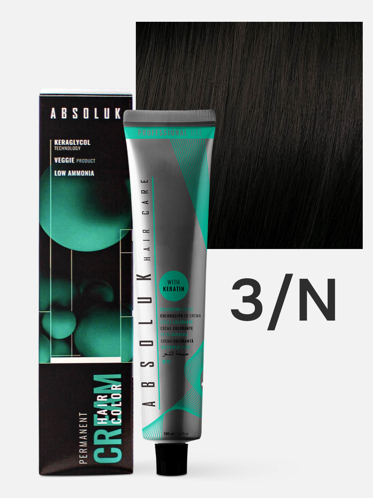 ABSOLUK Permanent Hair Color Cream 3N Краска стойкая для волос темный каштан натуральный нейтральный 100 мл