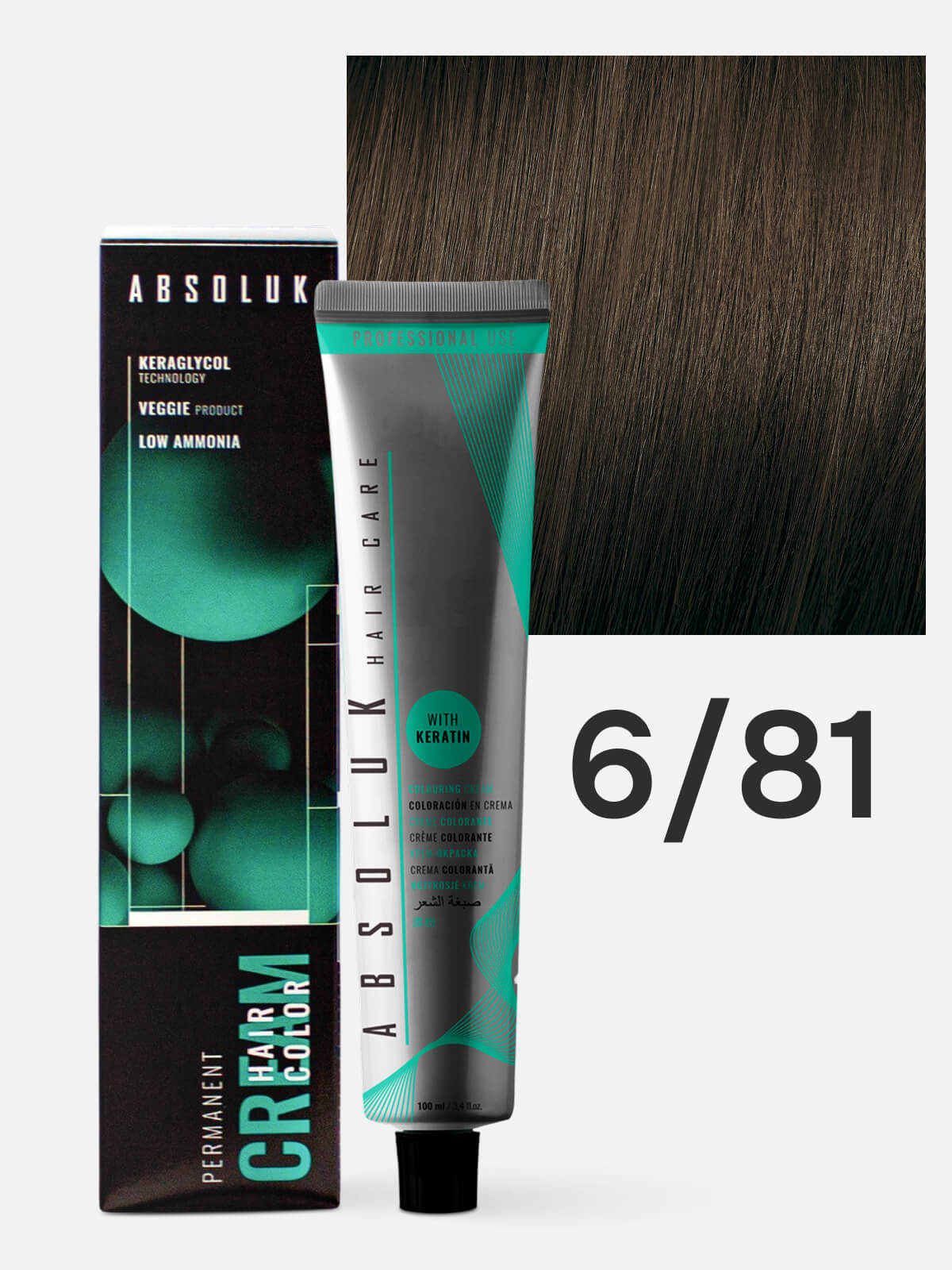 ABSOLUK Permanent Hair Color Cream 6.81 Краска стойкая для волос темный блондин коричнево-пепельный 100 мл