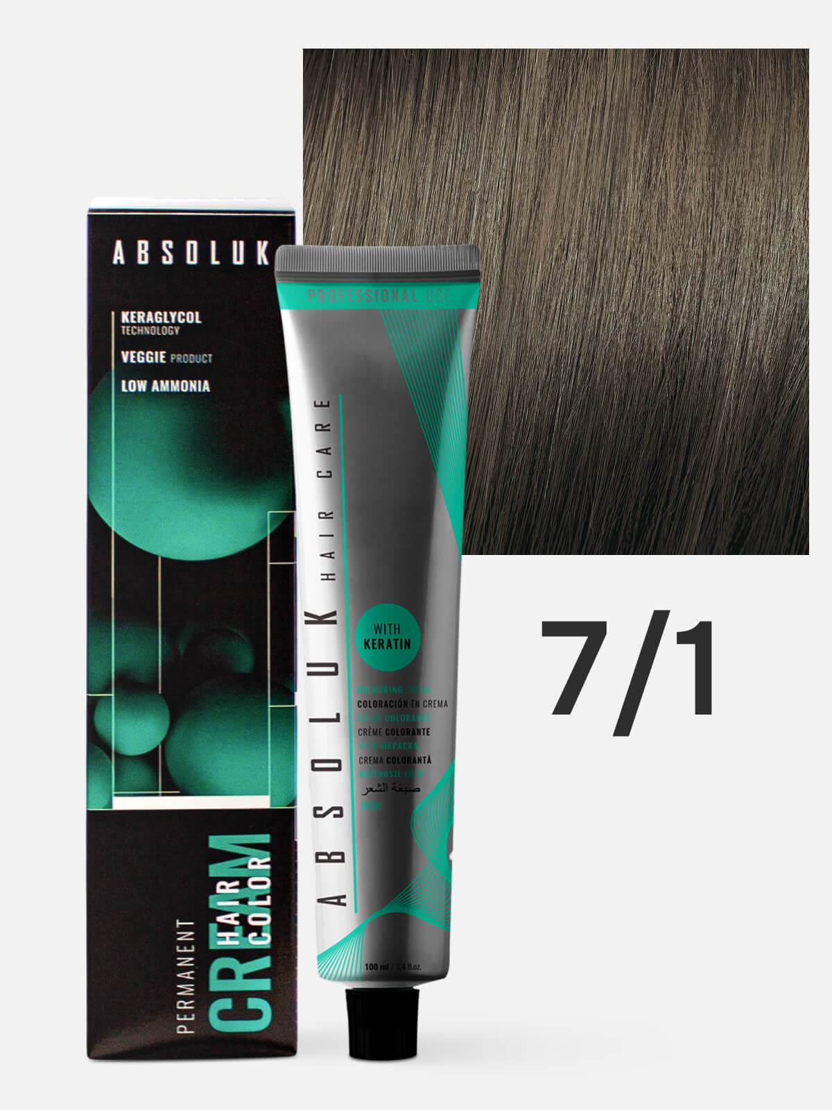 ABSOLUK Permanent Hair Color Cream 7.1 Краска стойкая для волос блондин пепельный 100 мл