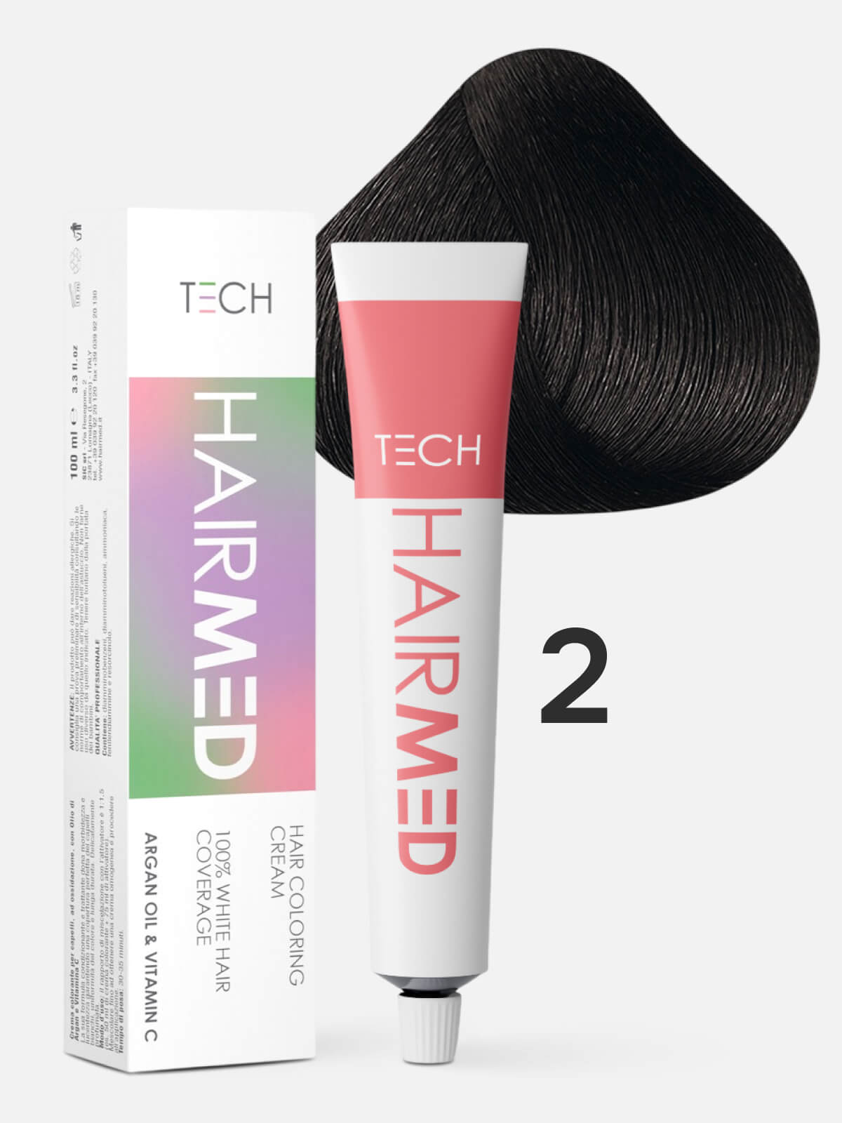 HAIRMED Tech Hair Coloring Cream 2 Перманентная крем-краска для волос черно-каштановый 100 мл