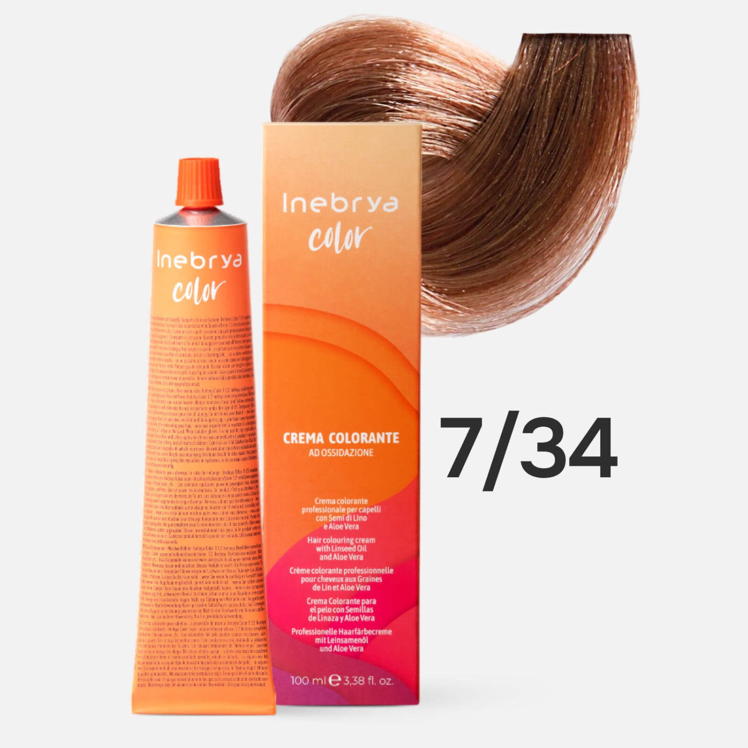 INEBRYA Color 7/34 Профессиональная крем-краска для волос Русый золотисто-медный 100 мл