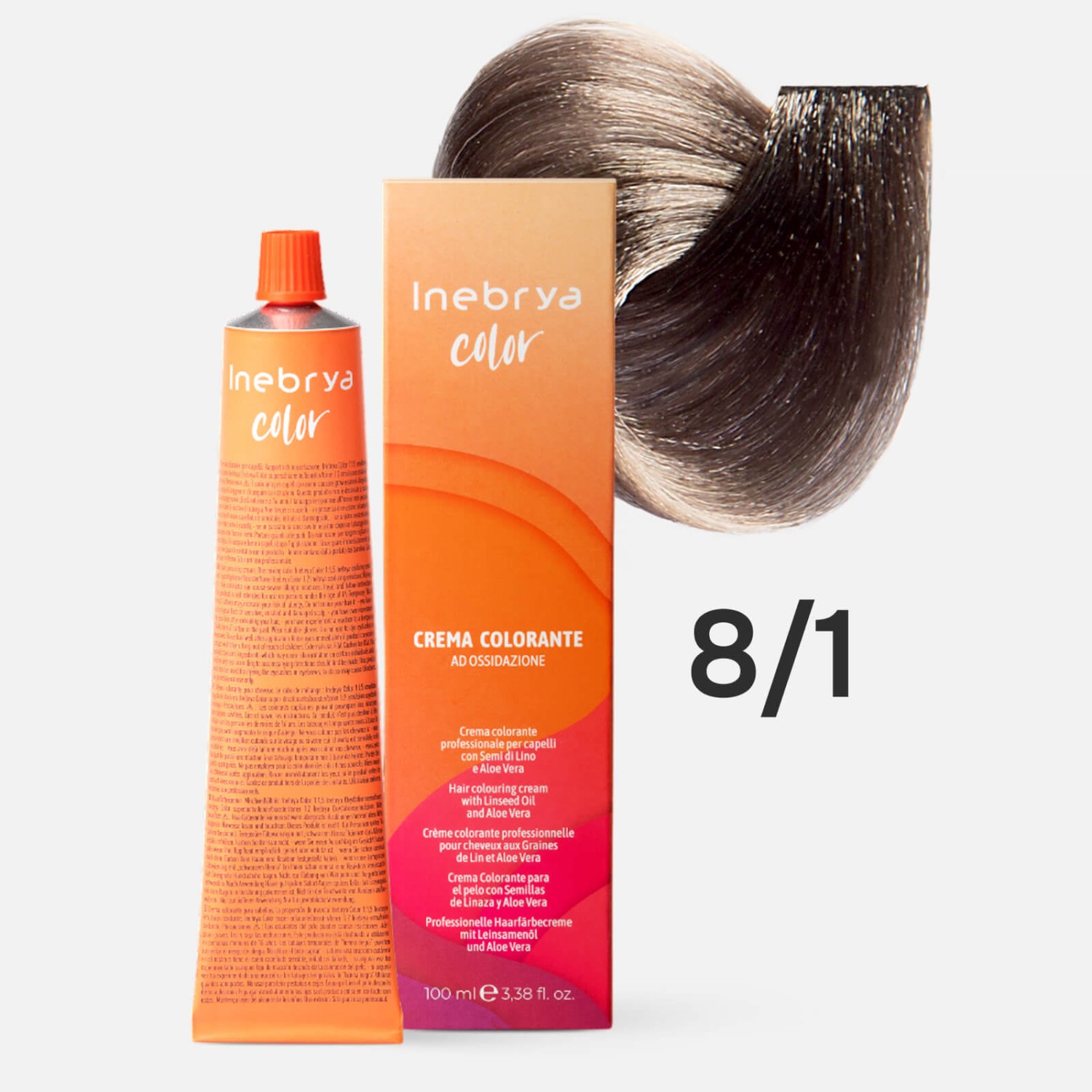 INEBRYA Color 8/1 Профессиональная крем-краска для волос Светлый русый пепельный 100 мл