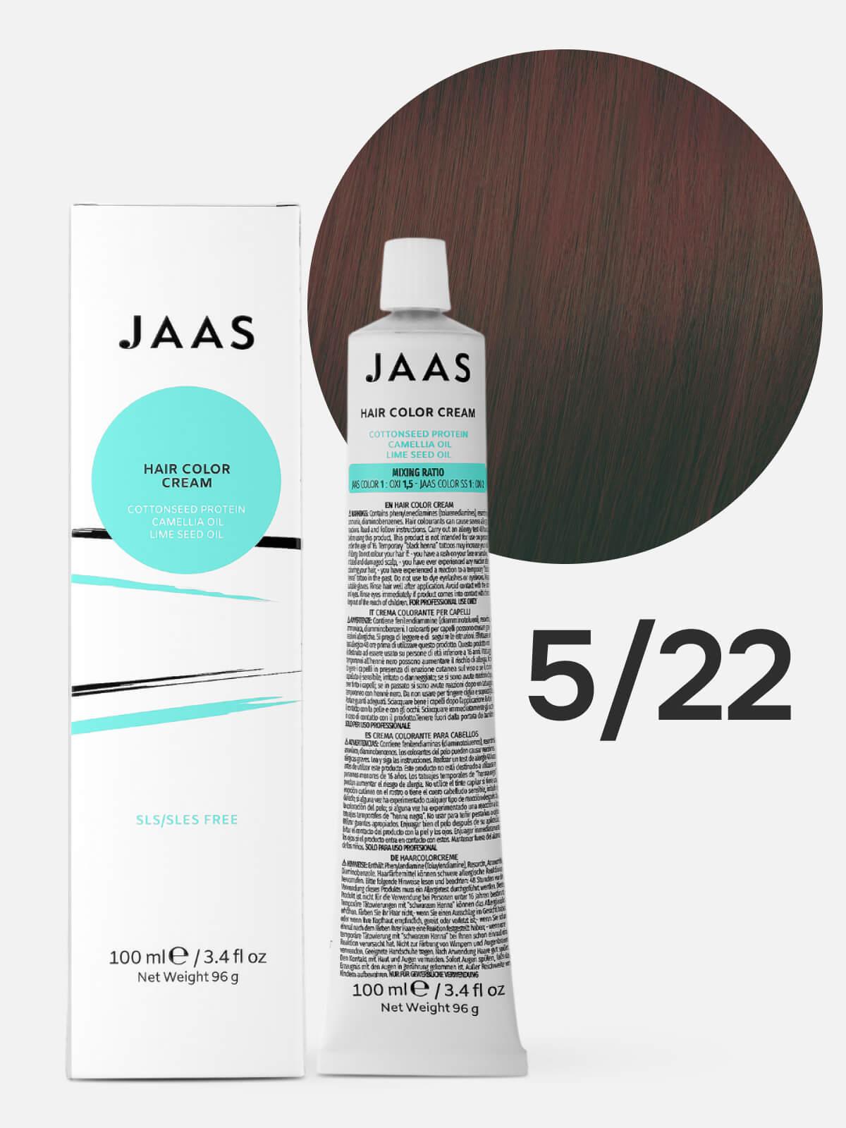 JAAS Hair Color Cream 5.22 — это перманентная краска для волос, которая обеспечивает питание и уход во время окрашивания.