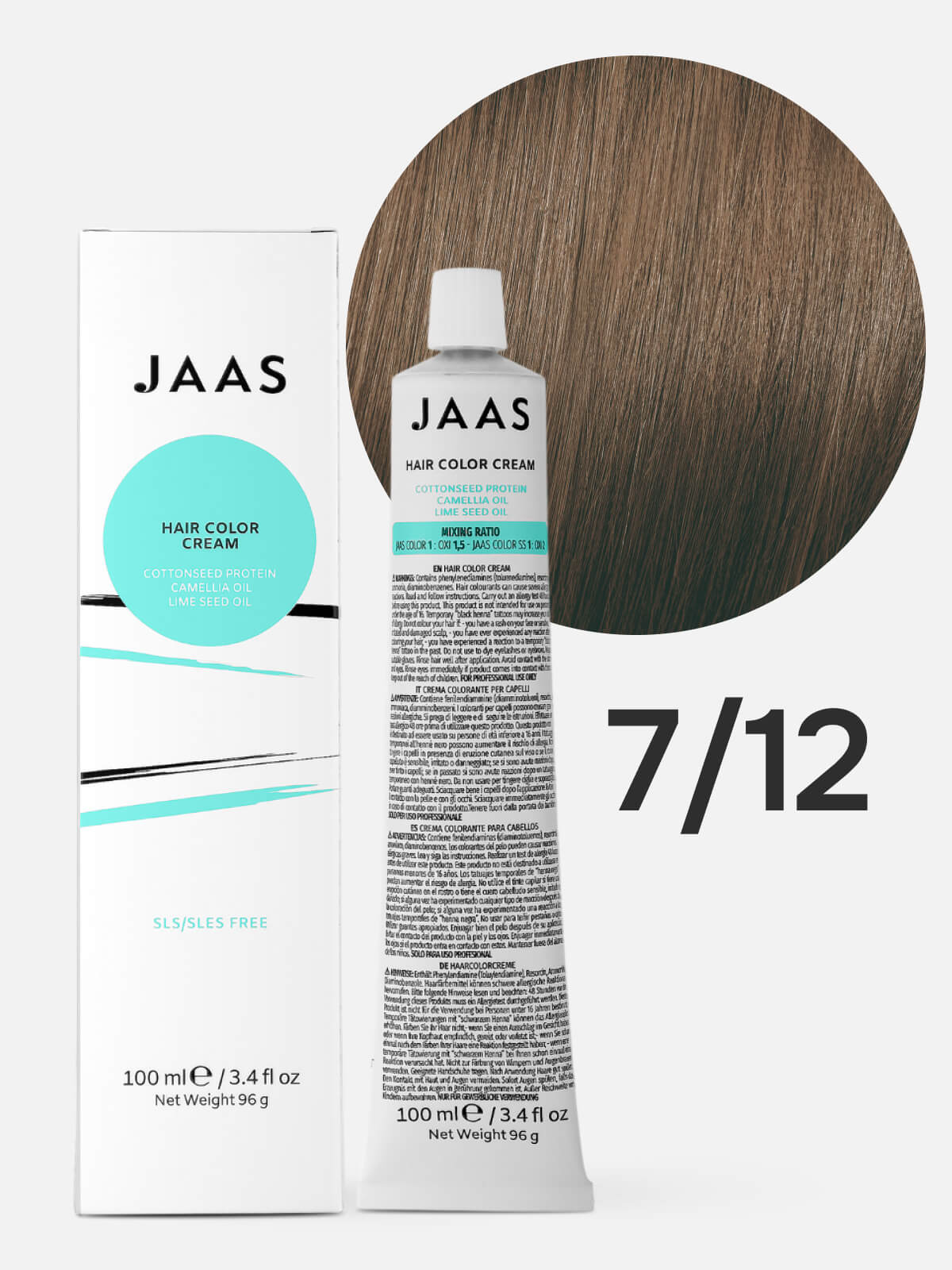 JAAS Hair Color Cream 7.12 — это перманентная краска для волос, которая обеспечивает питание и уход во время окрашивания.