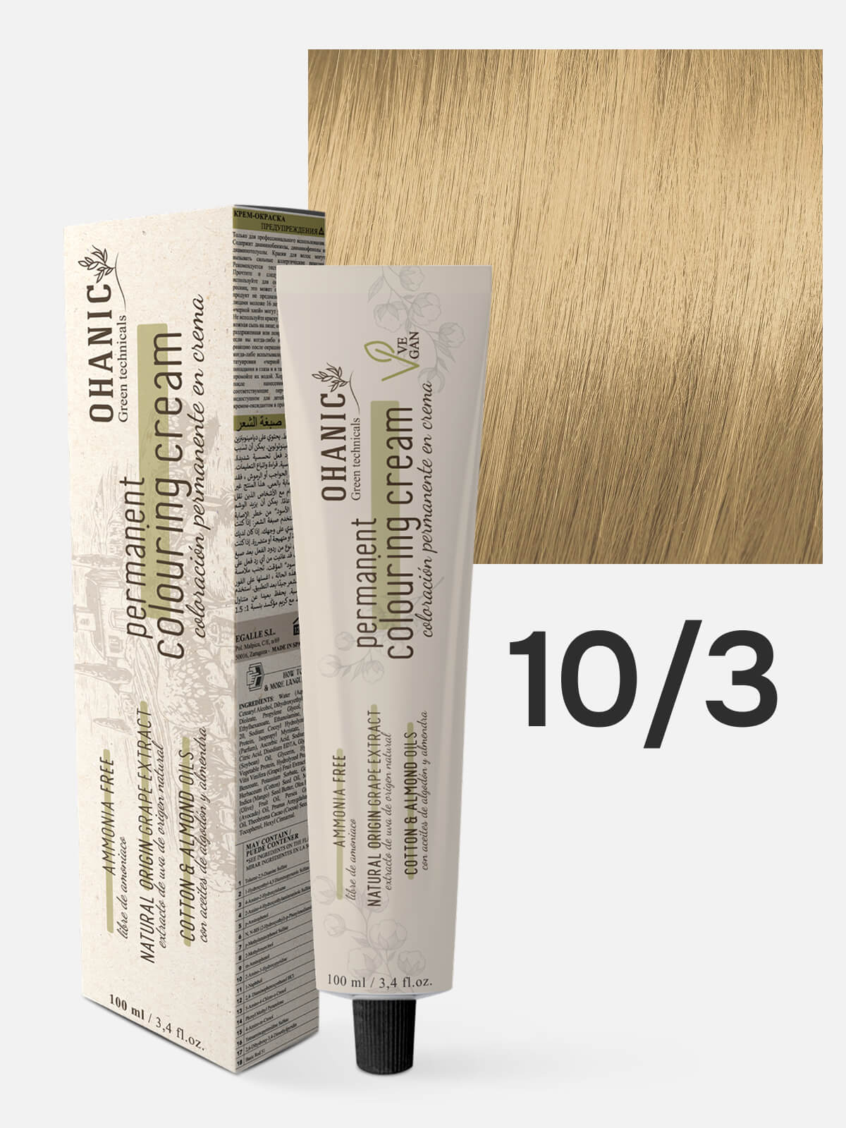 OHANIC GREEN TECHNICALS Крем-краска безаммиачная для волос PERMANENT COLOURING CREAM AMMONIA FREE 10.3 экстра светлый блондин золотистый 100мл