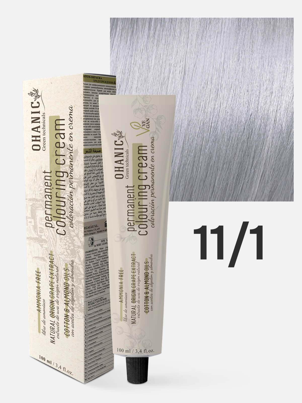 OHANIC GREEN TECHNICALS Крем-краска безаммиачная для волос PERMANENT COLOURING CREAM AMMONIA FREE 11.1 суперосветляющий пепельный блонд 100мл