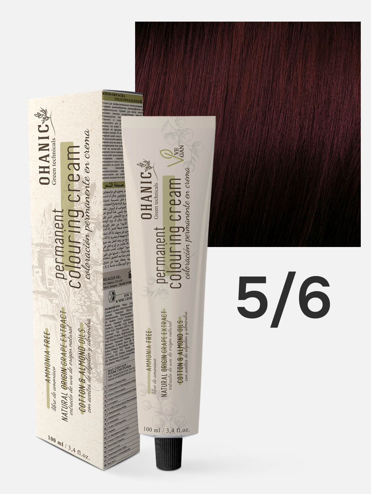 OHANIC GREEN TECHNICALS Крем-краска безаммиачная для волос PERMANENT COLOURING CREAM AMMONIA FREE 5.6 светлый каштан красный 100мл