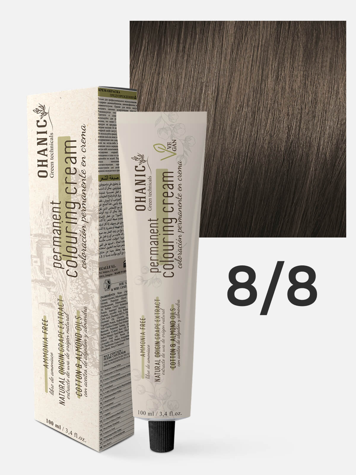 OHANIC GREEN TECHNICALS Крем-краска безаммиачная для волос PERMANENT COLOURING CREAM AMMONIA FREE 8.8 светлый блонд коричневый 100мл