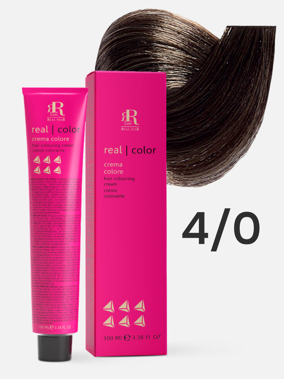 RR LINE REAL STAR Крем-краска для окрашивания волос REAL COLOR PROFESSIONAL HAIR COLOURING CREAM 4.0 каштановый натуральный 100мл