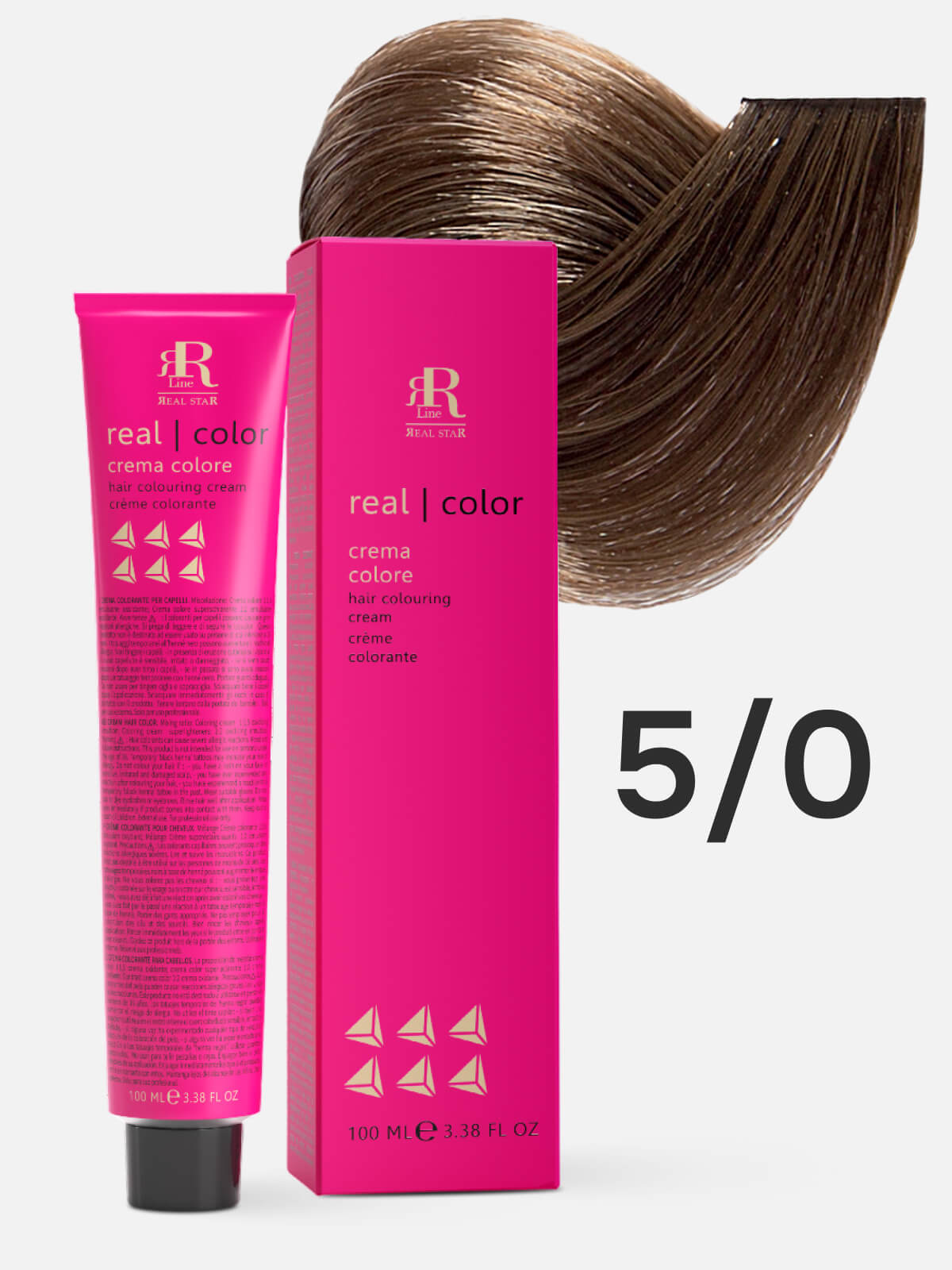 RR LINE REAL STAR Крем-краска для окрашивания волос REAL COLOR PROFESSIONAL HAIR COLOURING CREAM 5.0 светлый каштановый натуральный 100мл
