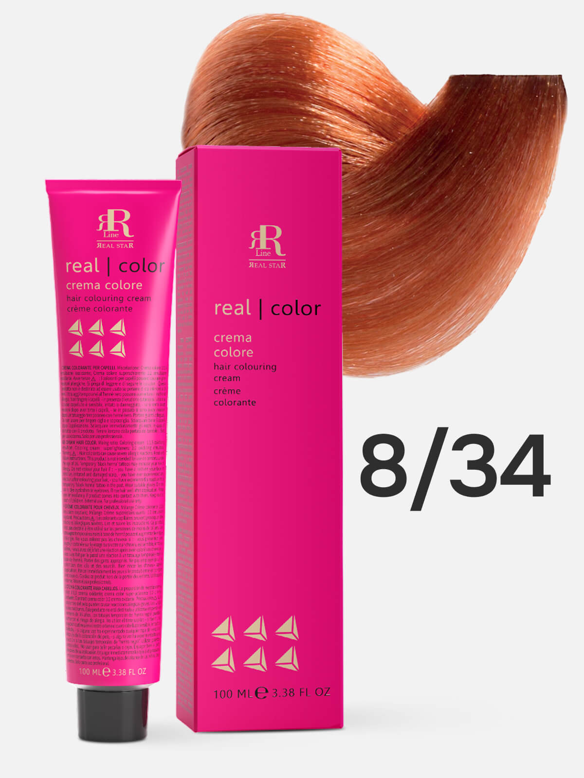 RR LINE REAL STAR Крем-краска для окрашивания волос REAL COLOR PROFESSIONAL HAIR COLOURING CREAM 8.34 светлый русый золотисто-медный 100мл